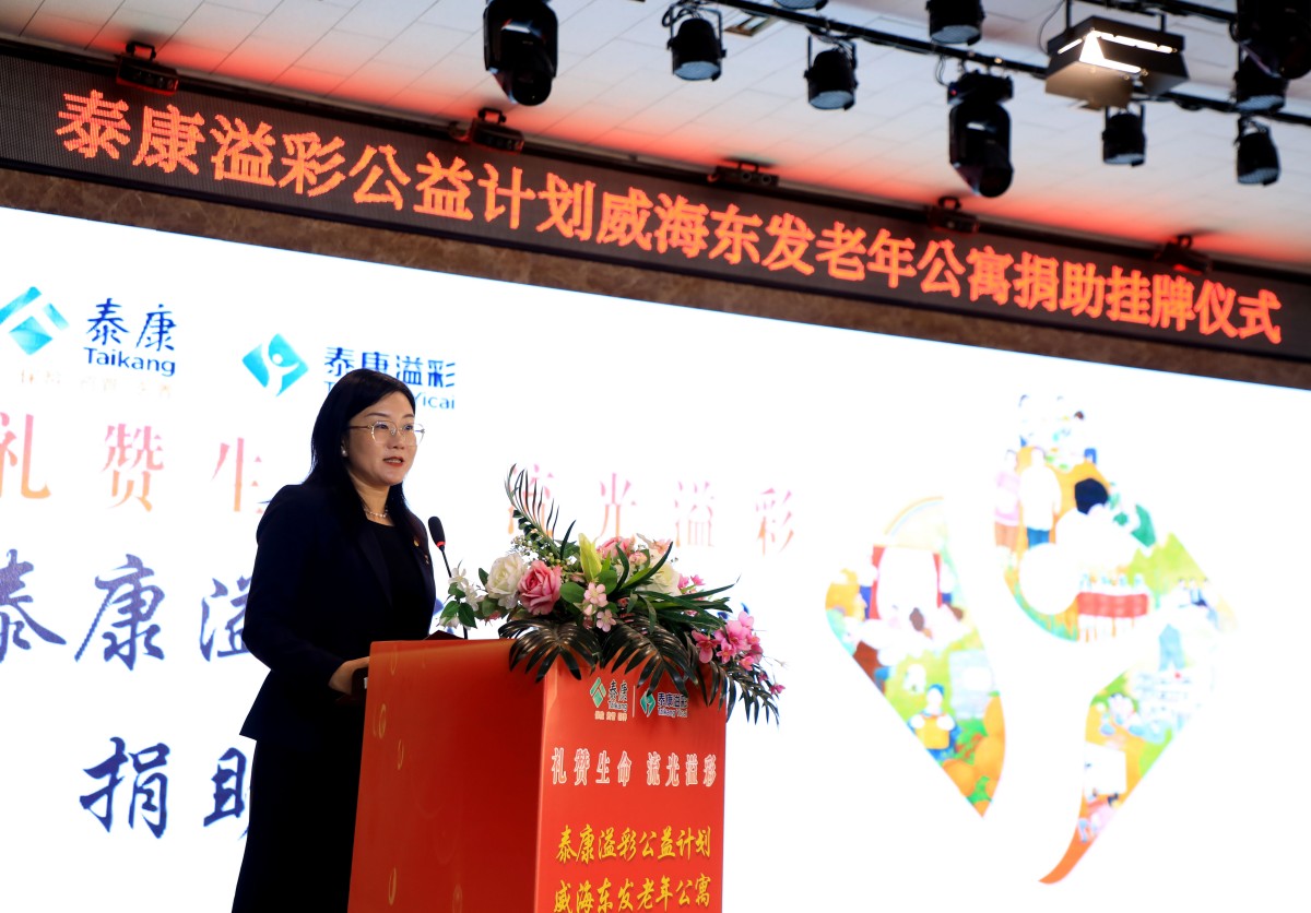 金秋送爽,“溢”路同行。10月23日,泰康“溢彩千家”公益項(xiàng)目捐助掛牌儀式在威?;鹁娓呒夹g(shù)產(chǎn)業(yè)開發(fā)區(qū)東發(fā)老年公寓舉行,標(biāo)志著泰康“溢彩千家”公益項(xiàng)目正式落地濱海小城,更好地助力威海養(yǎng)老事業(yè)發(fā)展。威海市保險(xiǎn)行業(yè)協(xié)會(huì)副秘書長白如和、高區(qū)社會(huì)事業(yè)局養(yǎng)老服務(wù)科科長吳漢明、老年公寓黨支部書記苗曉丹、泰康人壽威海中支負(fù)責(zé)人王彬、副總經(jīng)理王琴,老年公寓長輩以及泰康人壽威海中支HWP溢彩志愿者及員工代表等參加了儀式。