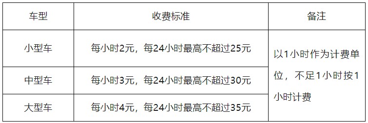 停車(chē)時(shí)間不超過(guò)1小時(shí)(含)不收費(fèi),新能源汽車(chē)不超過(guò)2小時(shí)(含)不收費(fèi),超過(guò)免費(fèi)時(shí)長(zhǎng)后: