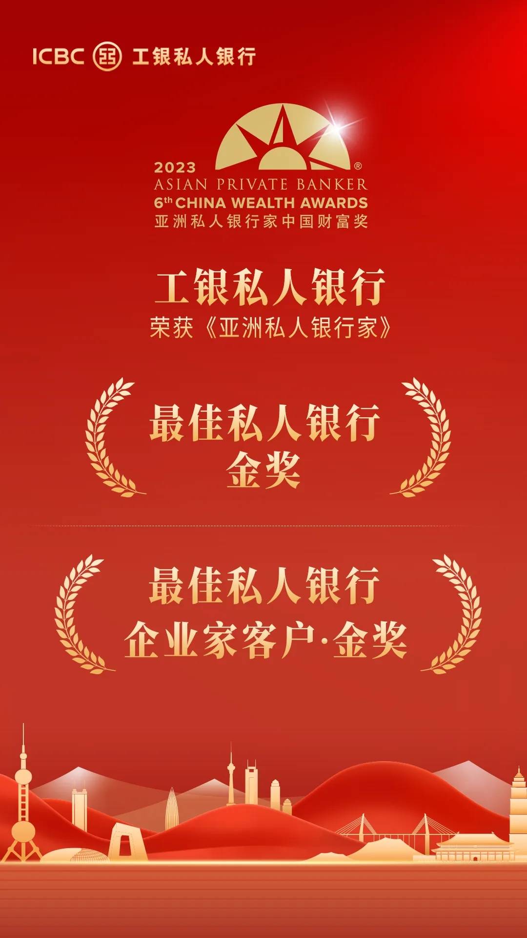 近日,香港《亞洲私人銀行家》雜志公布“2023年中國(guó)財(cái)富獎(jiǎng)”評(píng)選結(jié)果,工銀私人銀行從眾多同業(yè)競(jìng)爭(zhēng)者中脫穎而出,榮膺“最佳私人銀行——國(guó)有銀行組·金獎(jiǎng)”及“最佳私人銀行——企業(yè)家客戶(hù)·金獎(jiǎng)”殊榮?!秮喼匏饺算y行家》雜志作為全亞洲最有影響力的私人銀行媒體機(jī)構(gòu)之一, 以其專(zhuān)業(yè)的報(bào)道和深度的數(shù)據(jù)分析深受私人銀行與財(cái)富管理界信賴(lài),此次榮獲《亞洲私人銀行家》雜志兩項(xiàng)大獎(jiǎng),這標(biāo)志著工銀私人銀行在綜合化服務(wù)能力和企業(yè)家客群服務(wù)能力表現(xiàn)得到權(quán)威媒體的充分肯定。